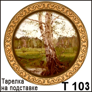 Тарелка Березовая роща тропа на подставке 15*15