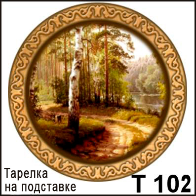 Тарелка Березовая роща тропа на подставке 15*15